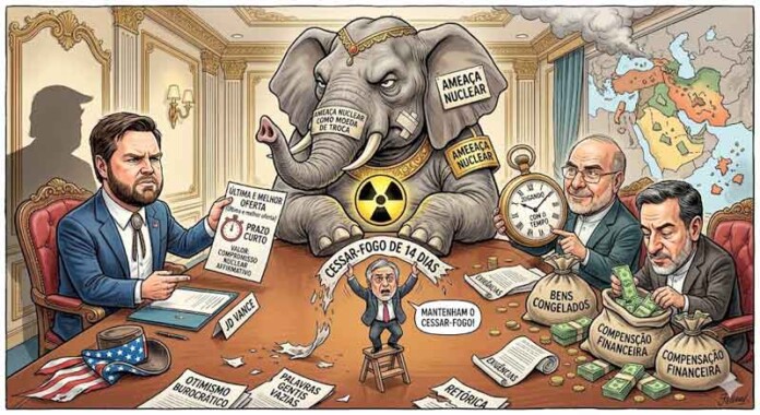 O vice-presidente norte-americano, JD Vance, liderou a delegação com a postura de quem não aceita migalhas, mas o impasse sobre o programa nuclear continua sendo o elefante na sala que todos fingem conseguir domar.