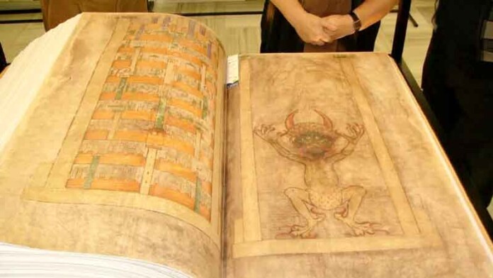 O mito pode ter surgido para expressar o fascínio da população com o seu tamanho. São 620 páginas de 89 cm de altura e pouco mais de 48 cm de largura, pesando um total de 74,8 kg. Ricamente detalhado com exterior em madeira e metal, sua realização deveria ter parecido algo realmente sobrenatural ao homem medieval, acreditam estudiosos.