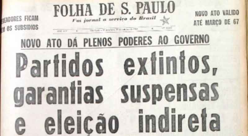 AI-5, em 1968, aprofundou a ditadura e o terrorismo de Estado – Foto: Reprodução | Folha de S. Paulo