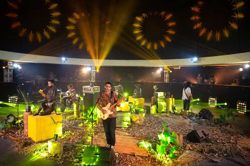 O repertório para duas horas de apresentação conta com clássicos como “Banzeiro na Areia”, “Tecendo o Som”, “Macuxi Muita Onda”, “Batom na Cueca”, “Coumprida”, “Cio-Vá-Cruz”, “Zapata”, “Gata Garota” e “Toque dos Ancestrais”, além de “Aranha”, “Tabaquito” e a versão de “Areia”, de Neuber Uchôa, que compõem o último álbum.