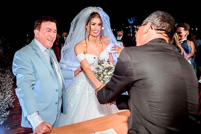 O cantor Amado Batista, de 74 anos, celebrou seu casamento com a miss Calita Franciele, de 23 anos, em uma cerimônia luxuosa – Foto: Reprodução/Instagram