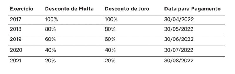 A adesão ao Refis poderá ser realizada a partir do dia 02 de janeiro até 30 de abril de 2022, por meio da Secretaria Municipal de Finança de Maués, por intermédio do Departamento Municipal de Arrecadação e Tributos – DAT. Os descontos vão de 20% a 100% de acordo com a tabela em anexo.