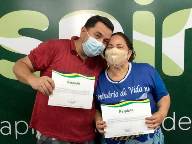 Em cinco meses de reabilitação no projeto RespirAR, Jaqueline Araújo, 49, e Ruy Barbosa, 50, receberam alta ao completarem com sucesso o ciclo de tratamento de fisioterapia pulmonar e atividades físicas. O casal teve a oportunidade de retomar a qualidade de vida, após o acompanhamento do projeto do Governo do Amazonas, coordenado pela Fundação Amazonas de Alto Rendimento (Faar) e Secretaria Estadual de Saúde (SES-AM)