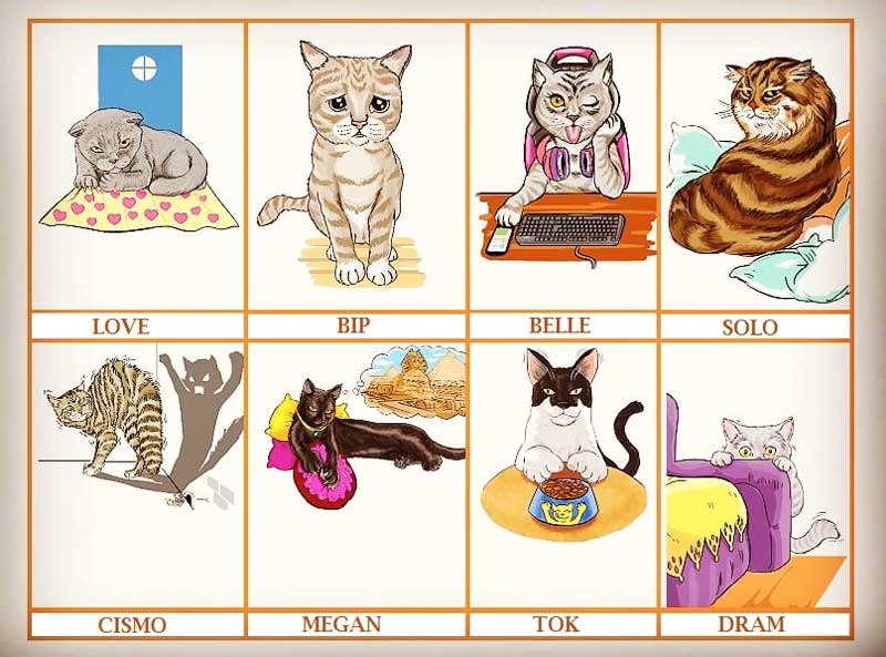 Assim, resolvi lidar com carinho e humor diante o comportamento dos peludos. Por isso, criei personagens para ilustrar essas criaturas fofas e encantadoras. Dentre eles, tema Love, que parou de comer em razão de sua dona ter adotado mais um gatinho. Solicita à dona que o mande ir embora como prova de amor; tem o Bip, que de dia, é triste e preguiçoso. Ao anoitecer, é energético e impulsivo. Mas, ele nega; tem a Belle que vive nas redes sociais, lambe-se o tempo inteiro e nunca se acha gata o bastante;