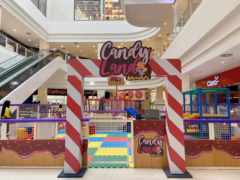 O parque “Terra dos Doces” funciona na Praça de Eventos, piso L1 e ficará disponível até o dia 12 de março. Entre as atividades que as crianças podem participar, estão o mar de bolinhas, navio marshmallow, gangorra, brinquedão com escorregador e jogo de tabuleiro. Todo o espaço é decorado com o tema de doces, o que garante várias fotos divertidas.