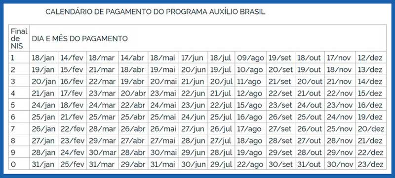 Em janeiro, o valor mínimo do Auxílio Brasil voltará a R$ 400, a menos que nova proposta de emenda à Constituição seja aprovada. Tradicionalmente, as datas do Auxílio Brasil seguem o modelo do Bolsa Família, que pagava nos dez últimos dias úteis do mês. No entanto, portaria editada no início de agosto antecipou o pagamento da parcela deste mês para o período de 9 a 22.