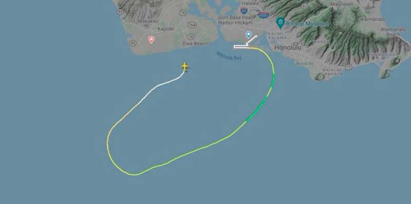 O voo 810 deixou o Aeroporto Internacional Daniel K., em Honolulu, por volta de 1h33 no horário local, segundo o site Flightradar 24, que rastreia trajetórias de voos. Ele mostrou que, pouco após a aeronave decolar, ela tentou voltar para Honolulu e começou a virar para a direita, sinalizando que estava mudando sua rota para o Aeroporto de Kalaeloa.