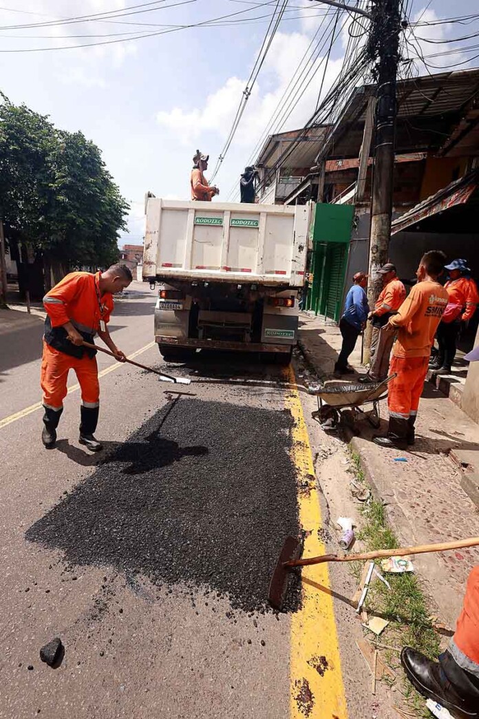 Simultaneamente, outra frente de trabalho atua na avenida Coronel Cyrilo Neves, também na Compensa. A via, uma das mais importantes da zona Oeste, está recebendo o mesmo volume de massa asfáltica em toda a sua extensão e nos dois sentidos da pista, corrigindo trechos que estavam deteriorados.