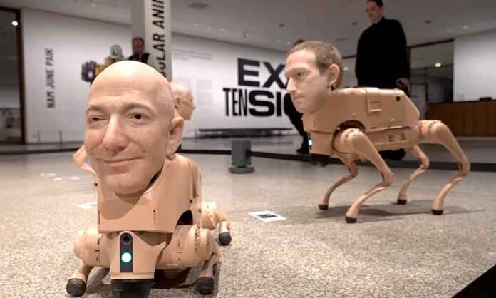 O dono de uma plataforma pode simplesmente acordar e decidir mudar a lógica de distribuição de conteúdo, impactando a vida de bilhões de pessoas instantaneamente. Essa falta de controle democrático sobre as ferramentas que moldam a percepção humana é o que Beeple tenta evidenciar com seus cães robôs.