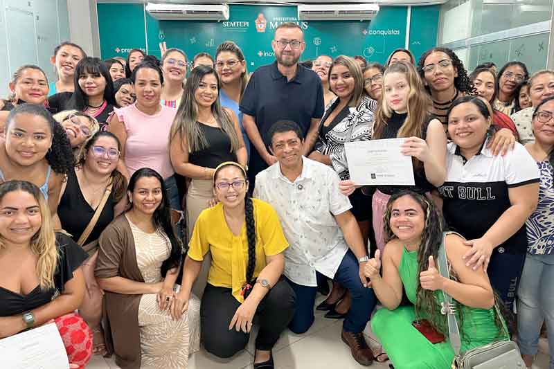 Mais de 40 alunas foram certificadas durante o encerramento da oficina “Designer de Sobrancelhas”, realizada nesta sexta-feira, 22 de agosto. A capacitação, promovida pela Prefeitura de Manaus, por meio da Secretaria Municipal do Trabalho, Empreendedorismo e Inovação (Semtepi), em parceria com Omar Castro, ocorreu na Galeria dos Remédios, localizada na rua Miranda Leão, nº 82, bairro Centro, zona Centro-Sul da capital.
