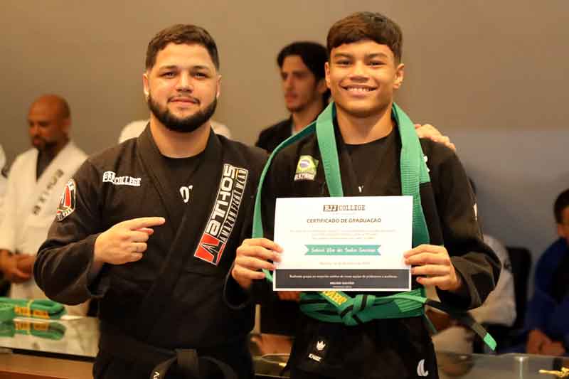 “Feliz pela graduação e pela temporada perfeita na qual terminei no topo mundial na minha categoria no ranking da IBJJF. Para 2026 é seguir treinando forte e continuar evoluindo”, celebrou Kron Cidade durante a solenidade.
