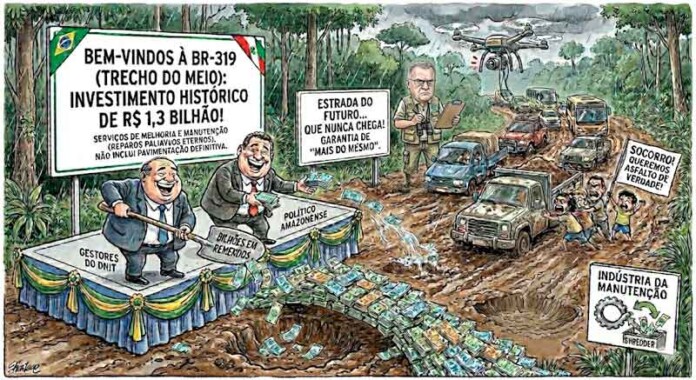 A novela da rodovia que liga Manaus ao restante do país ganhou um novo capítulo que, para muitos, parece um “reprise” de gosto duvidoso. Voltou ao centro de um debate acalorado com a publicação de novos editais bilionários. O Departamento Nacional de Infraestrutura de Transportes (DNIT) anunciou investimentos que somam mais de R$ 1,3 bilhão para o “Trecho do Meio” compreendido entre os quilômetros (250,7 e 656,4).