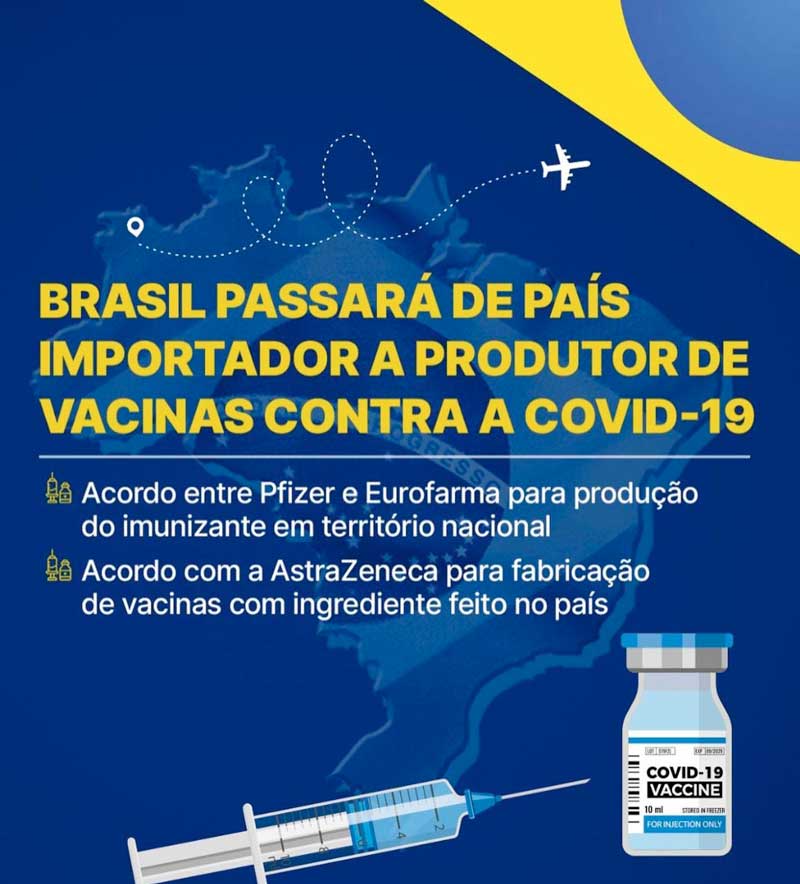 Entre as ações para esta transição estão o acordo firmado entre a Pfizer e a brasileira Eurofarma para produção do imunizante contra a Covid-19 da farmacêutica americana no Brasil a partir de 2022. O Governo Federal também assinou acordo de transferência de tecnologia com a AstraZeneca para possibilitar que a Fiocruz produza vacinas com ingrediente fabricado em território nacional.