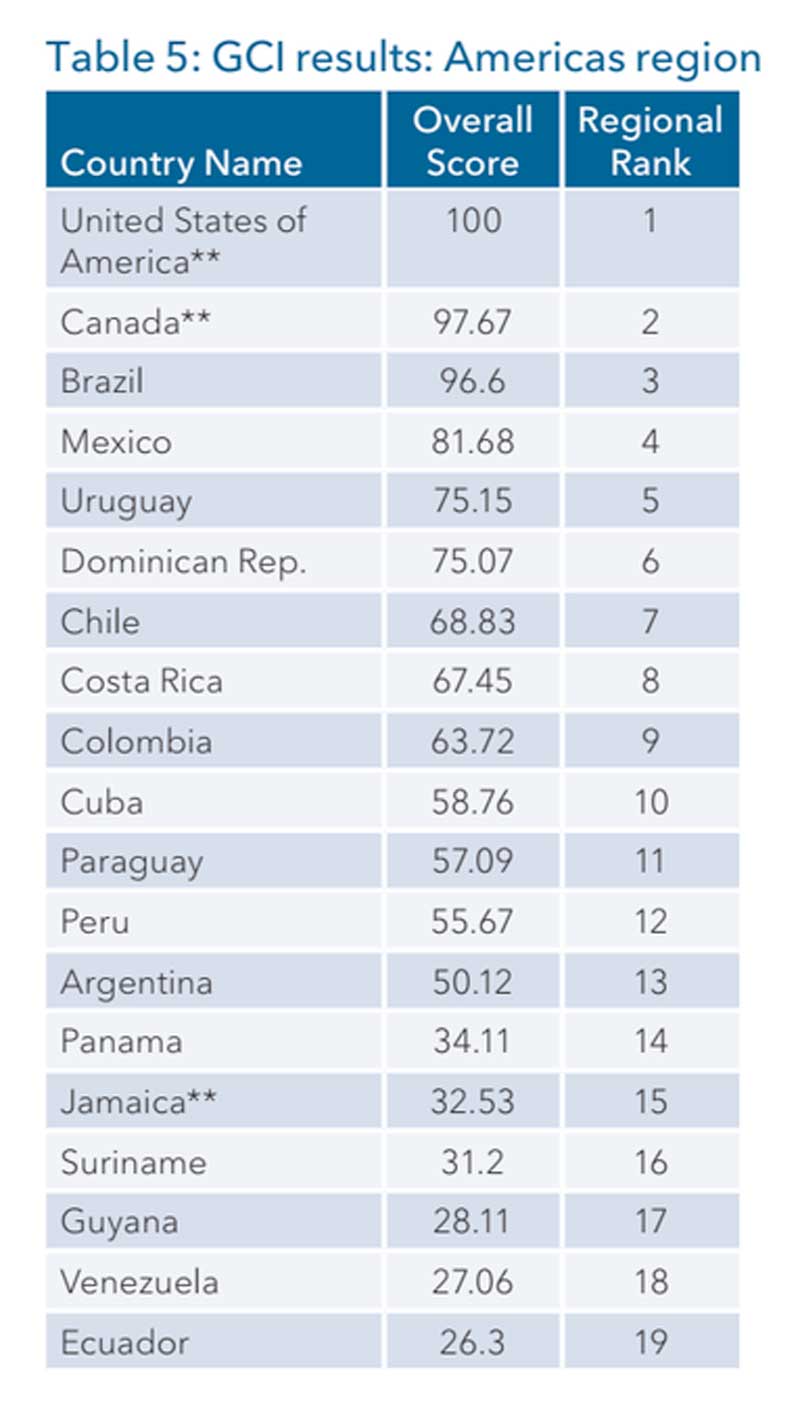 O Brasil subiu do 71º para o 18º lugar no Índice Global de #Cibersegurança (GCI) da União Internacional de Telecomunicações (@ITU). Nas Américas, o país passou a ocupar o 3.º lugar, atrás apenas dos Estados Unidos e do Canadá.