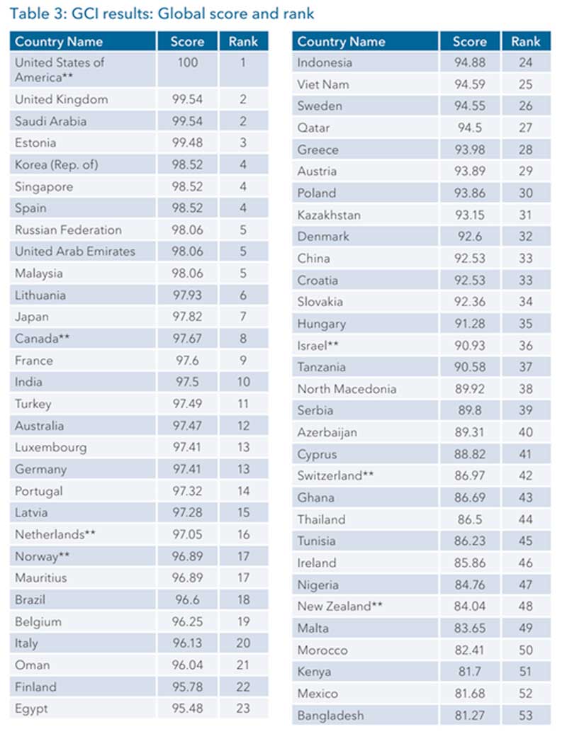 O Índice mede o grau de comprometimento dos países com a cibersegurança, de acordo com cinco critérios: medidas legais, medidas técnicas, medidas organizacionais, desenvolvimento de capacidades e cooperação.