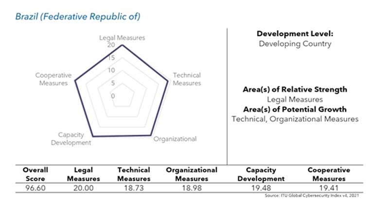 O avanço do Brasil no Índice deve-se ao desenvolvimento das capacidades do país, com a aprovação da Política Nacional de Segurança da Informação, da Estratégia Nacional de Segurança Cibernética (E-Ciber), e da Estratégia Nacional de Segurança das Infraestruturas Críticas.