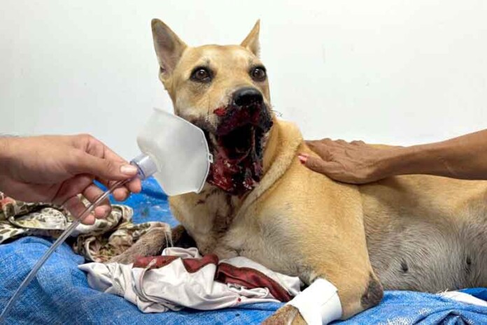 O incidente ocorreu na madrugada de quinta feira (1º/01) quando o animal, assustado com o barulho dos fogos, foi atingido pela explosão. A força do impacto resultou na perda de parte da boca e em traumas severos na face.
