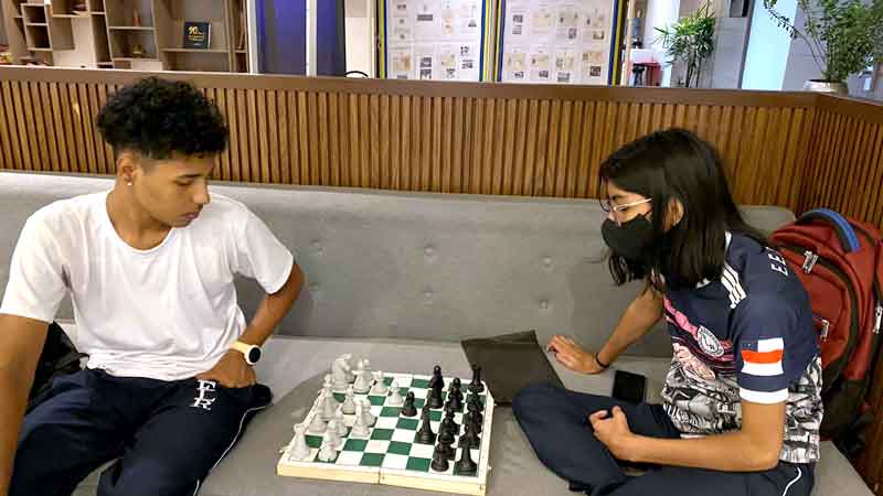 Matheus explica que seu contato com o xadrez também começou na escola, só que em 2021.