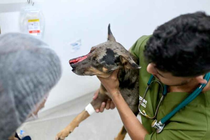 Ao dar entrada na unidade hospitalar, o cão passou por uma avaliação criteriosa da equipe multidisciplinar. Apesar da gravidade da lesão, os médicos-veterinários confirmaram que o paciente estava consciente e reagiu positivamente aos estímulos iniciais. O procedimento cirúrgico para a reconstrução da área atingida foi considerado um sucesso pela equipe médica.