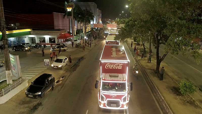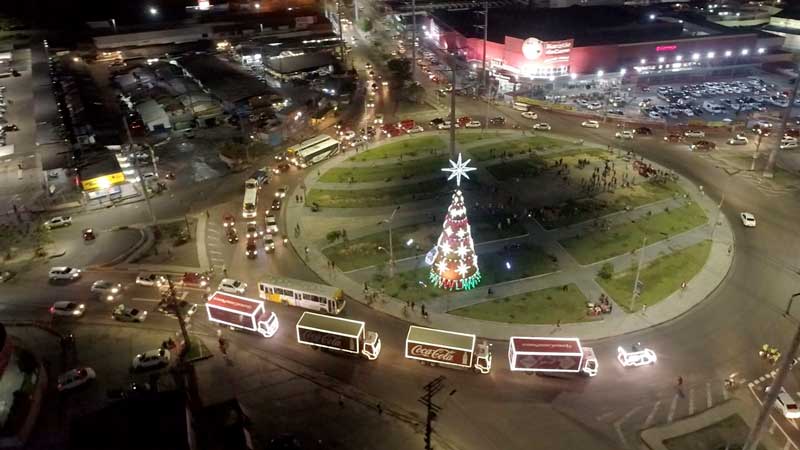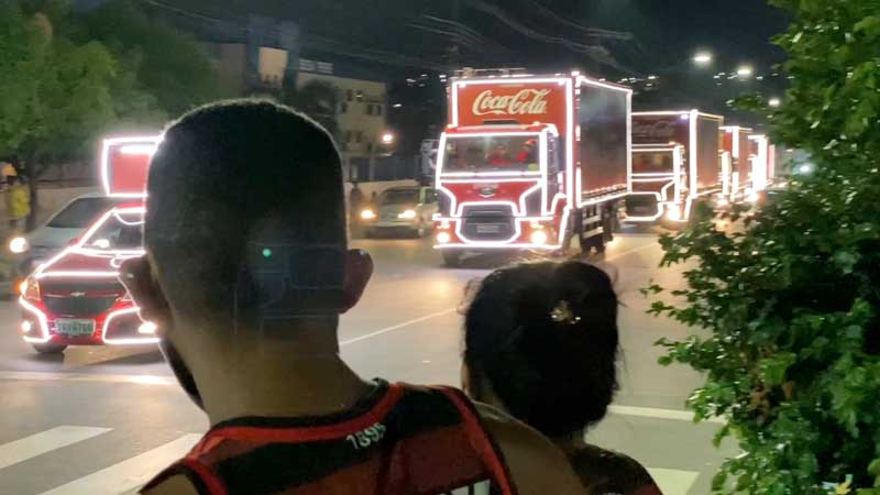 Desde a última sexta-feira (10/12), a Caravana de Natal da Coca-Cola começou a desfilar pelas principais vias de Manaus. A atração já faz parte do calendário da cidade, levando o espetáculo de luzes e cores dos tradicionais caminhões vermelhos, com a presença do Papai Noel. A caravana fez uma pausa neste domingo (12/12) e retorna às ruas do dia 17 ao 23.