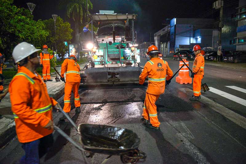 Prefeito vistoria obras noturnas de requalificação viária na avenida Rodrigo Otávio