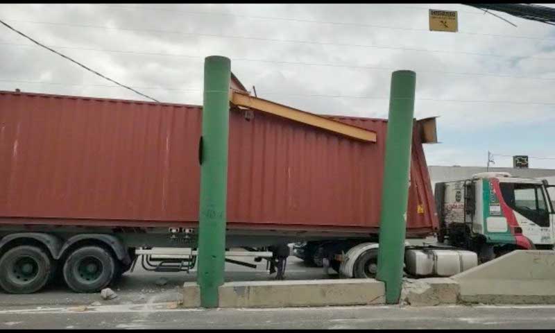 Carreta atinge limitador de altura na zona Centro-Sul de Manaus