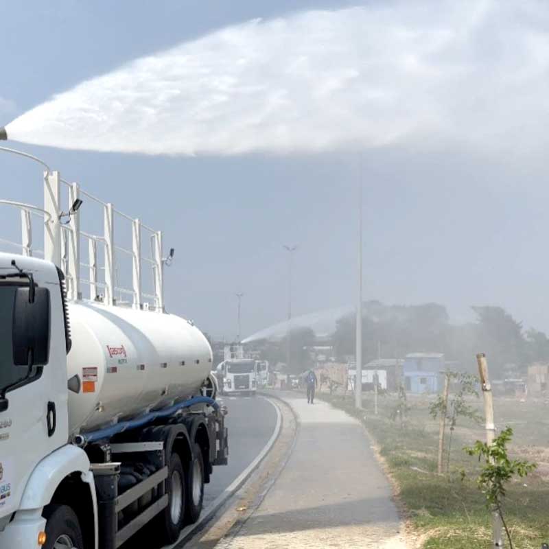 Caminhão-pipa da prefeitura é acionado para conter incêndio no parque linear...