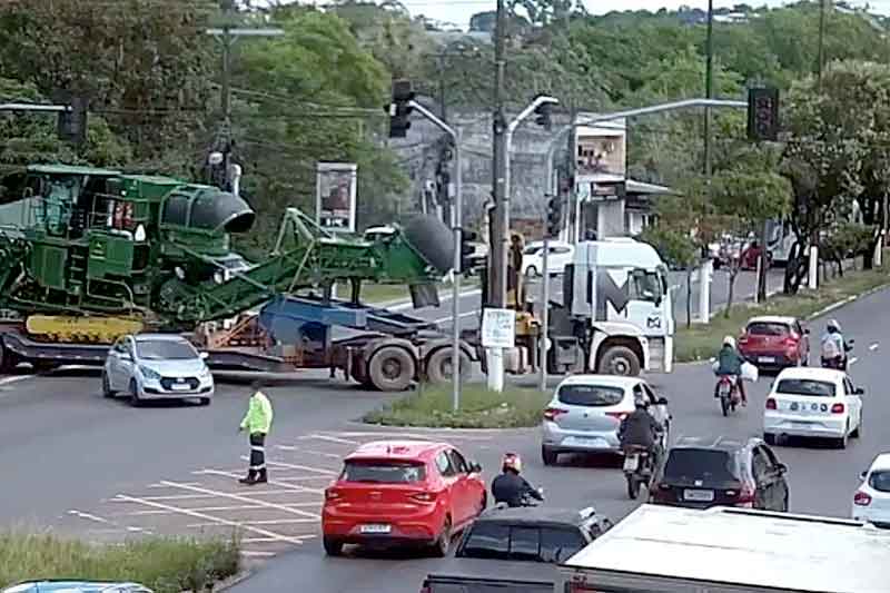 Avenida Max Teixeira é interditada após carreta danificar cabos de semáforo