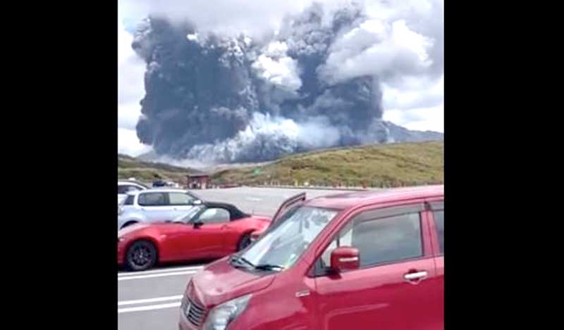 Monte Aso: Vulcão entra em erupção no Japão e forma nuvem...