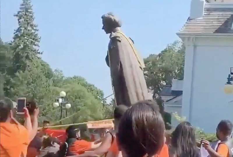 Estátua da Rainha Elizabeth é derrubada em protesto contra morte de...