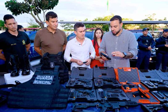 “A Guarda Municipal de Manaus nunca foi tão forte quanto na nossa gestão. Depois de 74 anos, fizemos o primeiro concurso para agentes armados, saímos de dois veículos para mais de cem e fomos os primeiros a autorizar a arma de fogo. Hoje, entregamos mais 150 pistolas TS9 e somos a única Guarda do Brasil com pistola menos letal, de munição elastomérica,” disse o prefeito, reforçando que a segurança é uma prioridade, mesmo não sendo uma obrigação direta do município.