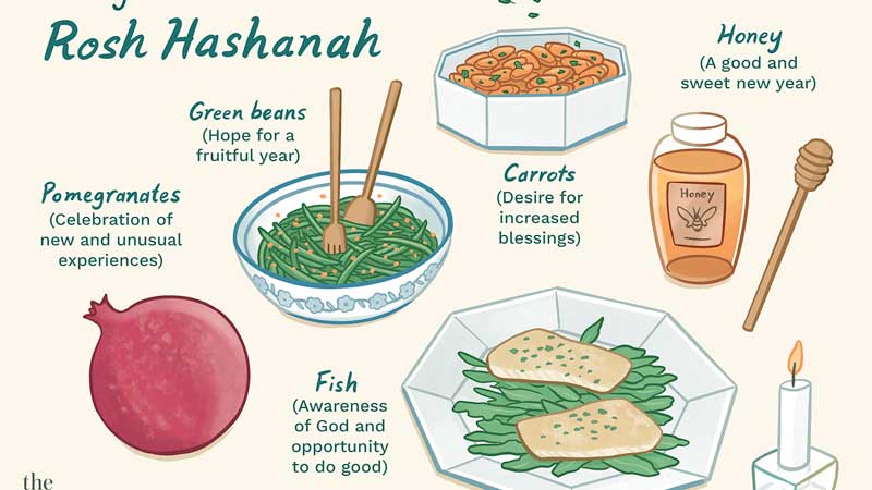 As famílias judias se reúnem para um jantar. Na manhã seguinte, muitos vão à sinagoga para ouvir o toque do shofar. É comum também que aconteça um almoço de ano novo.