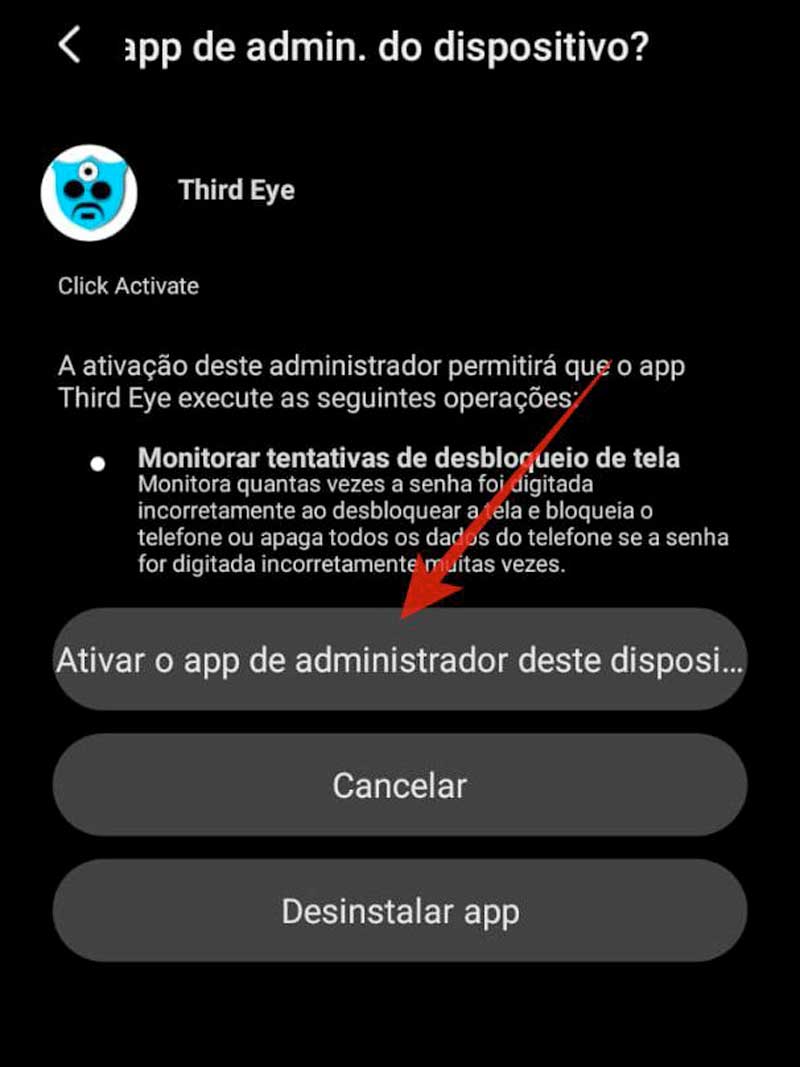 Passo 1: baixe o aplicativo Third Eye (Android) e, se desejar utilizá-lo você deve liberar a permissão para que o aplicativo possa se sobrepor ao demais, ter acesso a sua câmera e que o app tenha acesso de administrador do seu dispositivo.