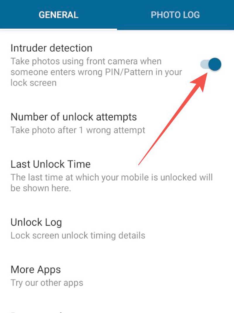 Passo 2: na guia “General” deslize o botão ao lado do primeiro item para poderem ser tiradas fotos de qualquer pessoa que tentar inserir uma senha no seu celular, mesmo que errada.