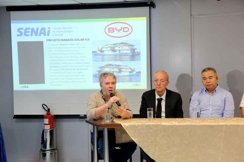 O Serviço Nacional de Aprendizagem Industrial do Amazonas (SENAI-AM) oficializou nesta quinta-feira (18/12), uma cooperação estratégica com a empresa BYD para o lançamento do projeto Manaós Solar 4.0. A cerimônia de anúncio ocorreu a bordo do Barco-Escola Samaúma II e marca o início de uma iniciativa focada na capacitação profissional em sistemas de energia solar fotovoltaica e tecnologias da Indústria 4.0 para comunidades ribeirinhas.