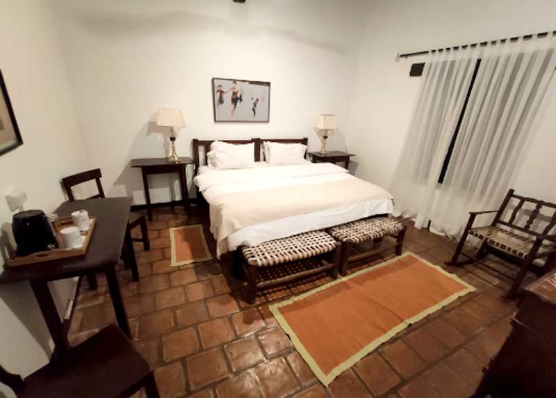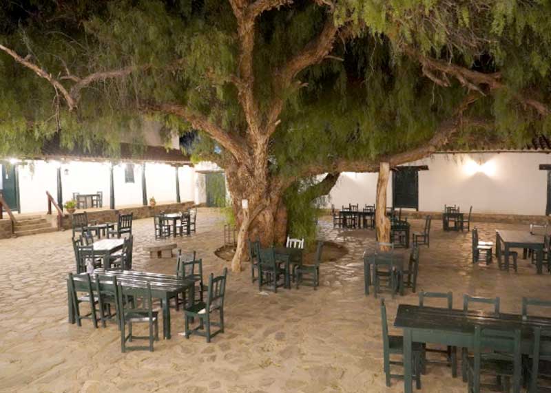 Um hotel em estilo colonial, o que mais chama a atenção é uma grande arvore no meio do pátio principal, onde também estão disponíveis mesas do restaurante do próprio hotel, para quem preferir comer ao ar livre.