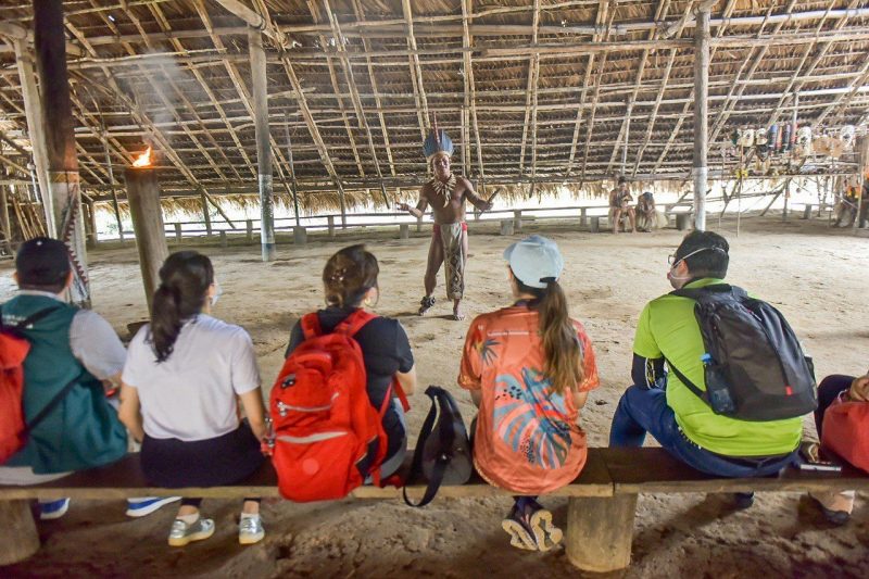 Os visitantes podem ainda contemplar a diversa fauna e flora se aventurando em trilhas pela floresta e também se surpreender com a gastronomia, degustando ingredientes, frutas e formigas utilizados na culinária indígena.