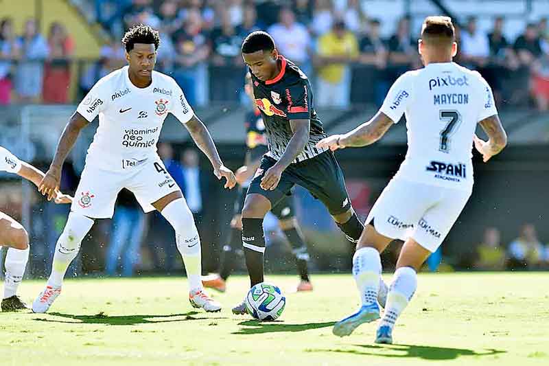 Com estratégias nítidas, Bragantino e Corinthians fizeram jogos opostos. O Massa Bruta teve a bola e ocupou o ataque, enquanto o Timão apostava em contragolpes. A equipe do interior paulista foi bem sucedida, criou mais chances e abriu o placar com golaço de Helinho. Já o Alvinegro dependeu das escapadas de Yuri Alberto, que teve dificuldades enfrentando toda a defesa adversária ‘sozinho’