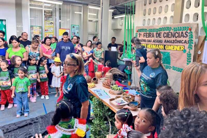 A Prefeitura de Manaus, por meio da Secretaria Municipal de Educação (Semed), realizou, nesta sexta-feira, 1º/8, a 1ª Feira de Ciências: “Saberes das Águas Amazônicas”, no Centro Municipal de Educação Infantil (Cmei) Herman Gmeiner, localizado no bairro Alvorada 1, zona centro-oeste da capital. A ação envolveu crianças do maternal ao 2º período, em uma programação cheia de ludicidade, conhecimento e valorização da identidade amazônica.