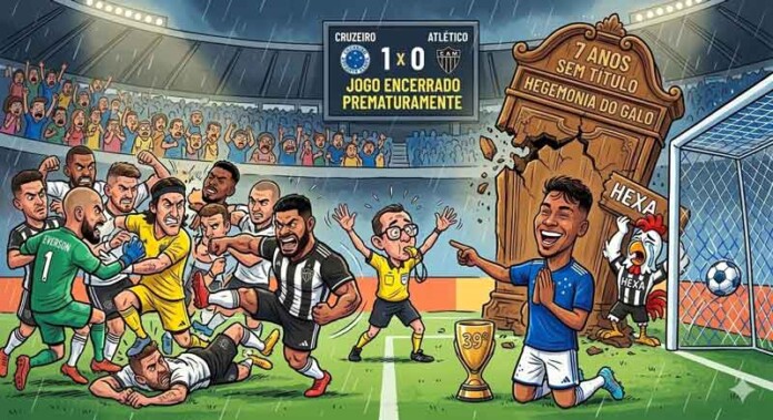 O domingo (8/3) deveria ser apenas de celebração para o futebol mineiro mas terminou em cenas lamentáveis no Mineirão. O Cruzeiro venceu o Atlético por 1 a 0 e soltou o grito de campeão entalado na garganta há sete anos. No entanto o brilho do título conquistado com o gol de Kaio Jorge acabou ofuscado por uma briga generalizada que forçou o encerramento antecipado da partida. O clássico que decidiu o estadual em jogo único mostrou o lado mais obscuro da rivalidade entre Raposa e Galo.