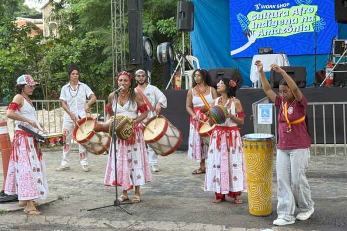O festival integrou o workshop sobre Cultura Afro-Indígena na Amazônia, que começou no dia 18 com uma roda de conversa no Colégio Brasileiro. A iniciativa visa ampliar o acesso à arte, à formação e ao diálogo dentro do território, conectando a comunidade diretamente às ações da AIHHUAM.