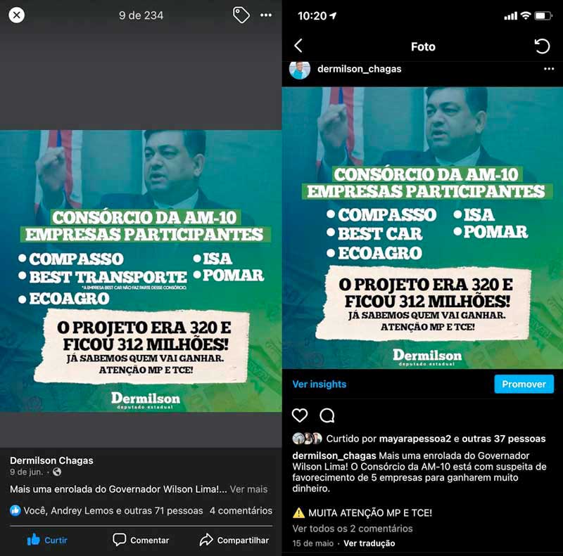 O deputado Dermilson Chagas explicou que as denúncias sobre o esquema criado pelo Governo do Amazonas para privilegiar as empresas do Consórcio AM foram feitas por ele originalmente no dia 15 de maio, quando publicou uma arte no seu Facebook e no Instagram os nomes das empresas.