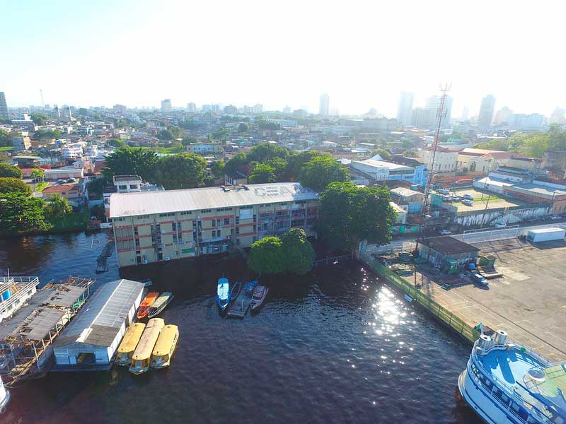 O edifício Mirante da Ilha vai ocupar o antigo prédio da Companhia Energética do Amazonas (Ceam), incluindo uma marina, varandas, praça de alimentação coberta, decks e uma bela cobertura sinuosa que remete a um banzeiro. Será uma das reconversões de uso projetadas para o “Nosso Centro”.