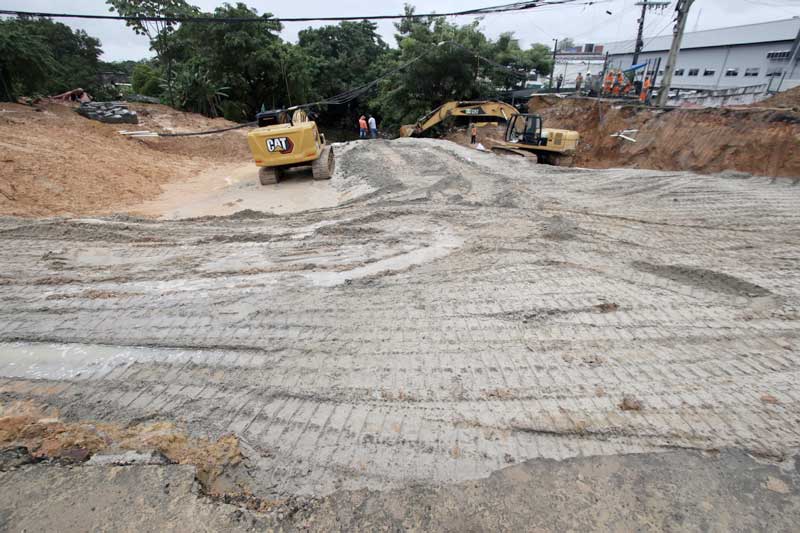 Renato Junior vistoriou o trecho no domingo. “As equipes já estão enchendo os sacos de rip-rap com farofa para começar o encabeçamento da drenagem. Todas as aduelas foram assentadas. O trabalho é árduo, mas é dessa forma que a gente segue, virando noite e dia, conforme determina o prefeito David Almeida”, ressaltou.