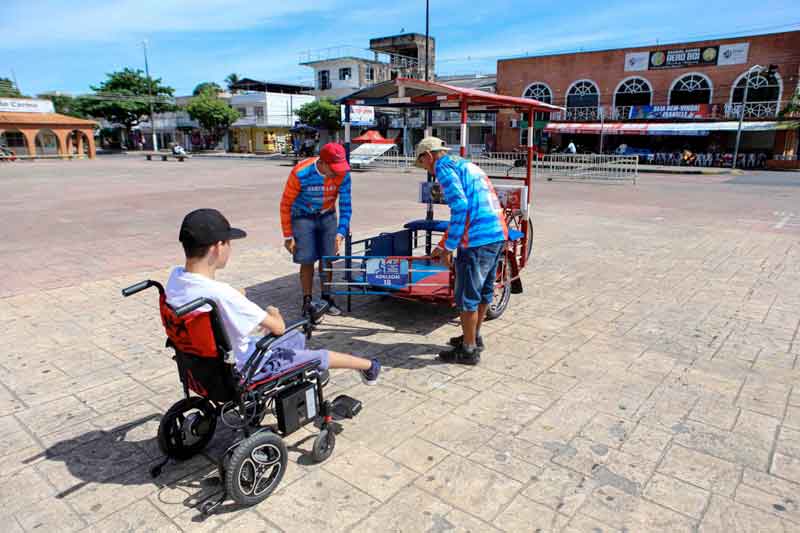 Principal meio de transporte do visitante em Parintins (a 369 quilômetros de Manaus), o triciclo, opção mais tradicional para conhecer os atrativos turísticos e passear pelas ruas da ilha dos bumbás Caprichoso e Garantido, vai circular com uma importante inovação este ano. Entre os 150 tricicleiros apoiados pelo Governo do Amazonas, um deles irá conduzir o primeiro veículo adaptado com uma rampa de acesso para receber pessoas com mobilidade reduzida.