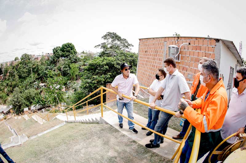 O prefeito de Manaus, David Almeida, acompanhado do vice-prefeito e secretário municipal de Infraestrutura, Marcos Rotta, vistoriaram, nesta quarta-feira, 20/10, a etapa final da obra de recuperação de uma área que sofreu erosão, na rua 197, no bairro Nova Cidade, zona Norte. Uma escadaria foi construída no local, garantindo mais dignidade e facilidade de acesso a cerca de 300 famílias residentes no entorno da área.