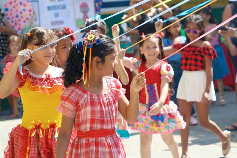 Ao longo da programação, a coordenação pedagógica da escola preparou atividades em sala de aula, como TV Folclore, brincadeiras de roda, circo, oficina de dança, palco, jogos folclóricos, além da apresentação das danças de toada, do cacetinho e tipiti e muitas comidas típicas, como banana frita, bolos, mingau de banana e munguzá e pipoca.