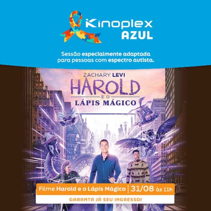 No próximo dia 31 de agosto (sábado), às 11h, crianças e jovens no espectro autista e suas famílias terão a oportunidade de assistir ao filme ‘’Harold e o Lápis Mágico’’. Tudo em um ambiente totalmente adaptado pelo Kinoplex Azul, um projeto que oferece sessões especiais com iluminação reduzida, som mais baixo e uma capacidade menor de público, permitindo que a plateia possa andar, cantar e se divertir livremente. Essas sessões adaptadas acontecem uma vez por mês, sempre no seu último sábado.