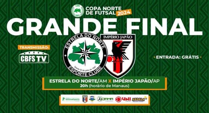 Um jogo de tirar um fôlego. É isso que se espera do encontro histórico entre Estrela do Norte/Manaus Futsal (Amazonas) e Império Japão (Amapá), que disputam nesta quinta-feira (05/12), a partir das 20h (local), a grande final da 16ª edição da Copa Norte de Futsal Adulto Masculino. A decisão acontece na Arena Poliesportiva Amadeu Teixeira, com entrada grátis para o público. O duelo também terá transmissão ao vivo pelo canal da CBFS TV no YouTube.