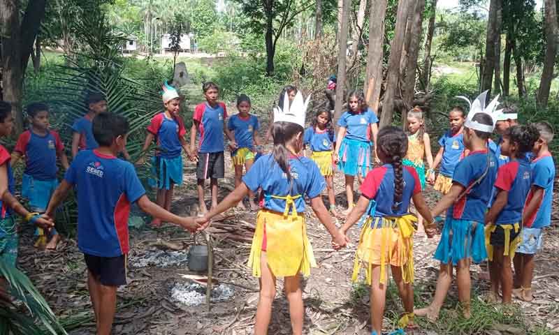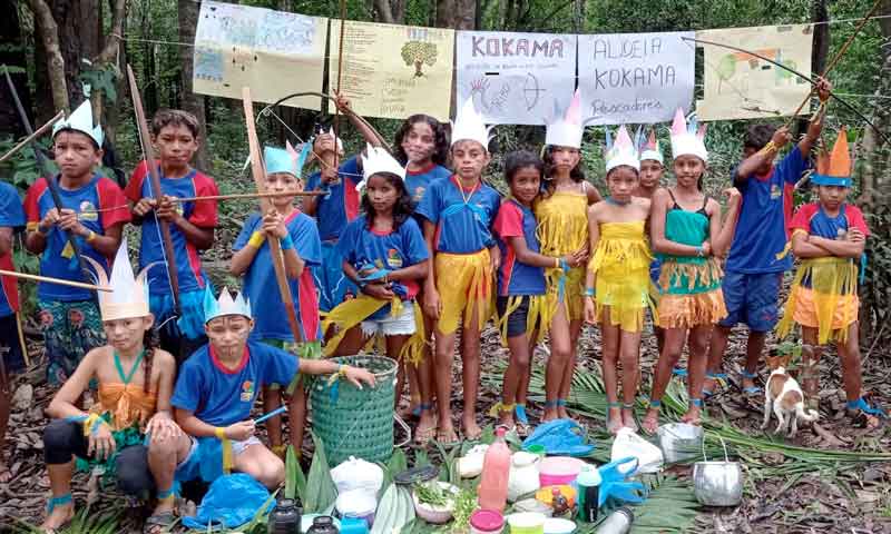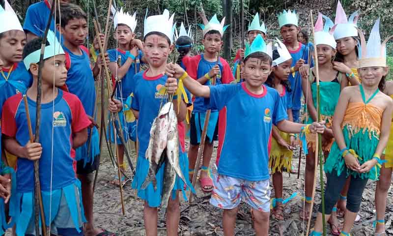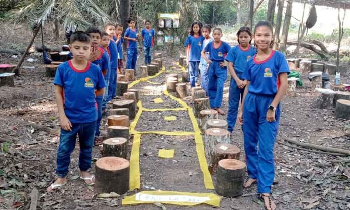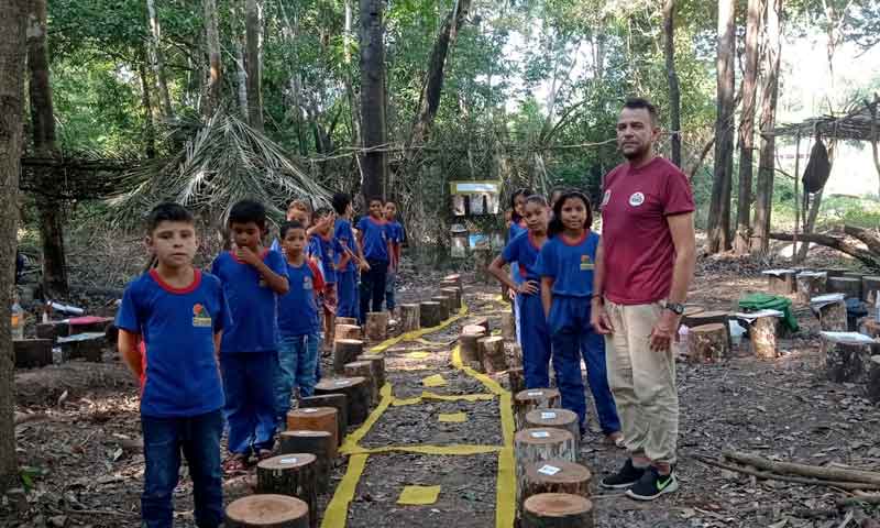 Um dos destaques é o “Jogo da Floresta – O que nos oferece a floresta”, uma atividade ao ar livre feita com toras de madeira numeradas e imagens da fauna regional. A dinâmica ensina sobre o trabalho coletivo e a importância de manter a vegetação em pé. O educador também desenvolveu o projeto “Cântico da Floresta”, que explora a lenda do uirapuru e a cultura do povo Kokama.